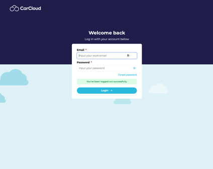 - Log in to the CarCloud platform using the username and temporary password provided in your invitation email.